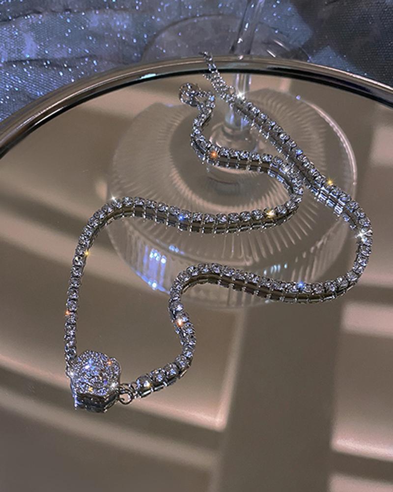 Allover Rhinestone Decor Floral Pattern Necklace, Silver