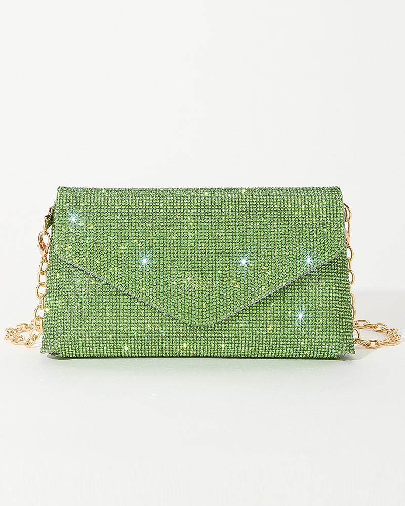 Allover Rhinestone Evening Envelop Clutch Bag, Green