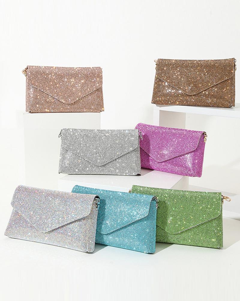 Allover Rhinestone Evening Envelop Clutch Bag, Silver