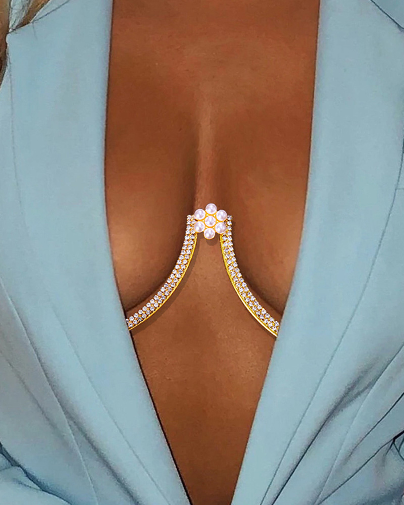 Allover Rhinestone Floral Pattern Beaded Body Chain, Gold
