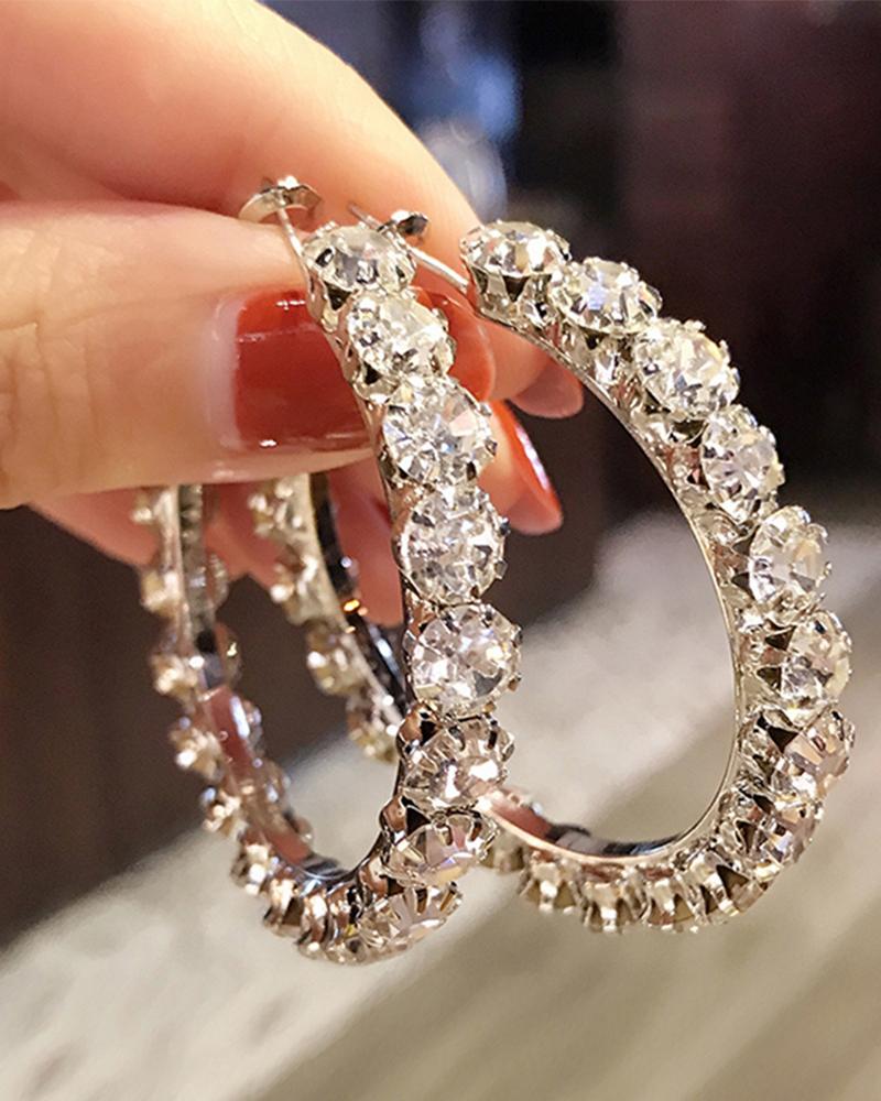 Allover Rhinestone Hoop Earrings, Silver