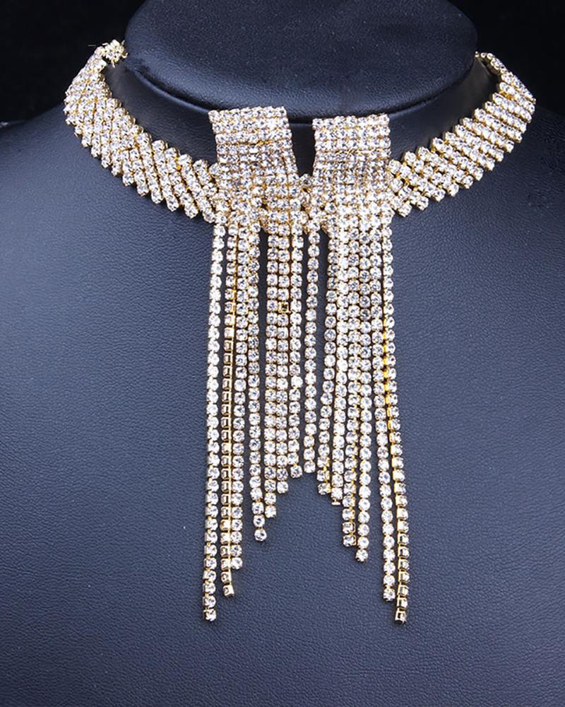 Allover Rhinestone Wide Band Jewellery Set, Gold