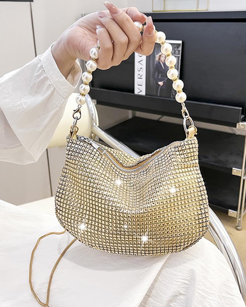 Allover Rhinestone Zipper Design Crossbody Evening Bag, Gold