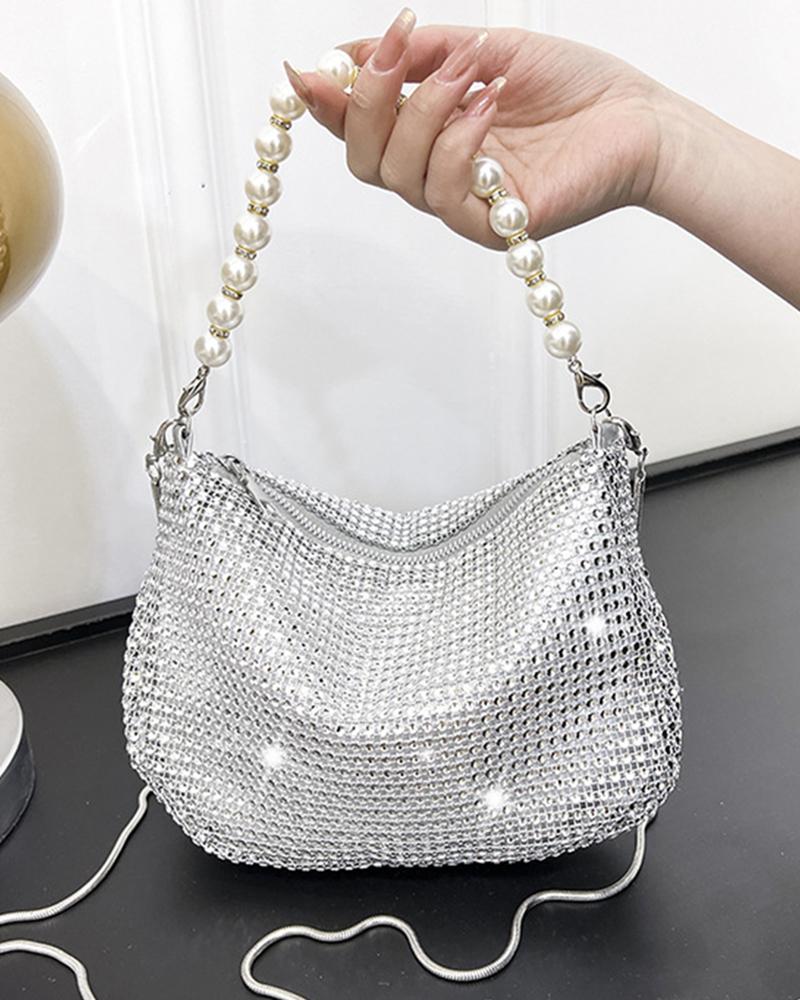 Allover Rhinestone Zipper Design Crossbody Evening Bag, Silver