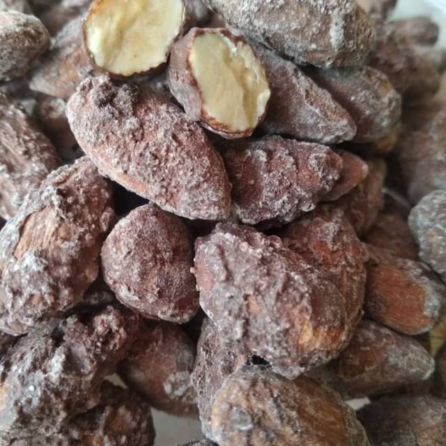 Almond panggang di balut coklat enak.