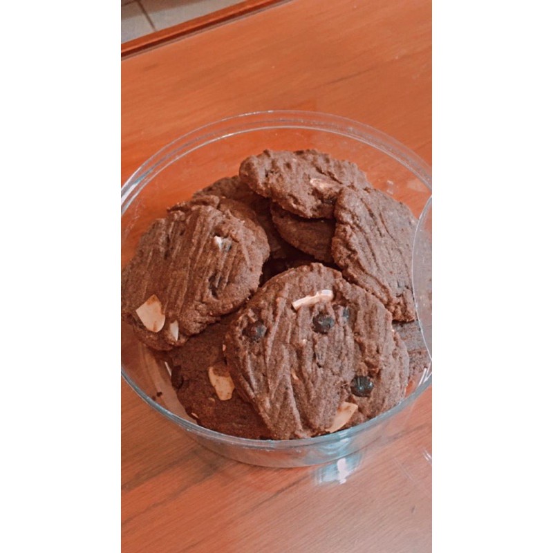 ✔️cookies rasa cokelat dengan topping kacang almond dan choco chip