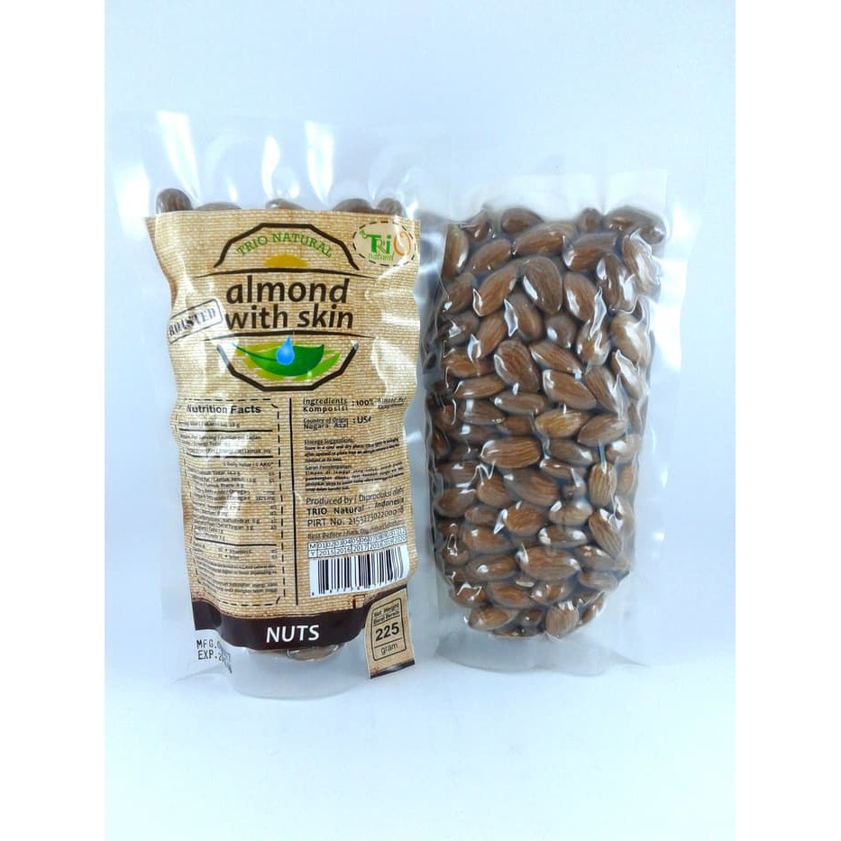 Almond Natural Skin On Roasted 225 Gr Trio Natural/ Almond Skin On Roa