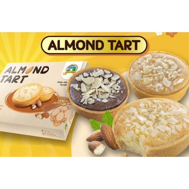 Kombinasi antara pie dan kue Almond. memiliki 3 varian rasa (original, keju, coklat) dan 2 macam package (isi 4pcs dan isi 6pcs). sangat cocok untuk oleh-oleh maupun di konsi sendiri bersama keluarga tercinta .