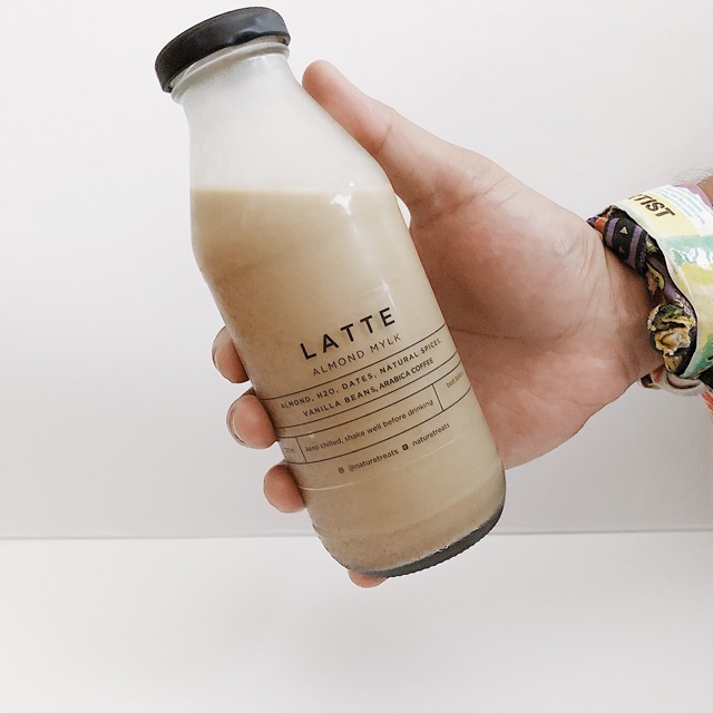 Fresh almond milk yang di mix dengan kopi arabica. Pemanis menggunakan kurma . #almondmilk #almondlatte #latte #coffee