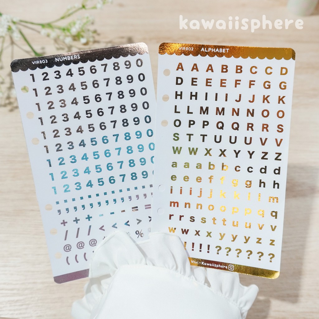 Alphabet / Numbers Foiled Sticker Kawaiisphere | Gold / Silver Foil Planner Ring Binder Sticker