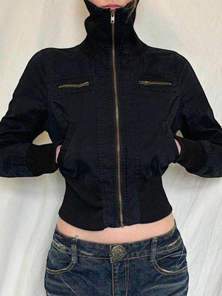 AltGoth Harajuku Гранж Куртки Женская уличная одежда Y2k E-girl Водолазка Длинный рукав Пальто на молнии Эмо Альтернативная готическая одежда S чёрный