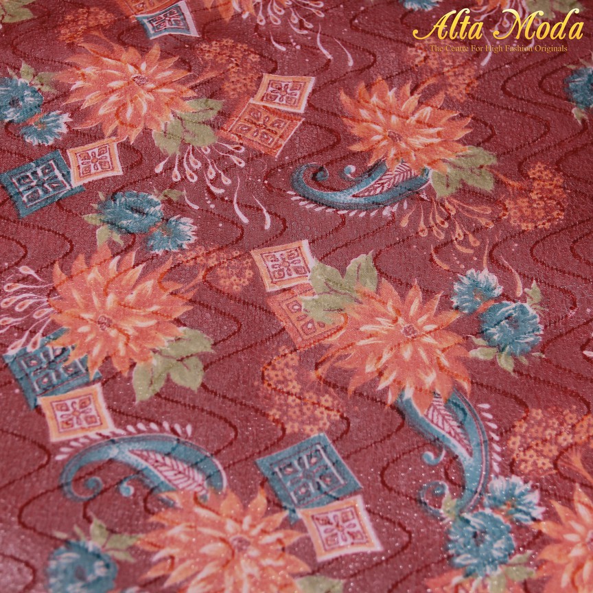 Alta Moda Jacquard Georgette Flowy Red Pattern Floral Orange (1M)