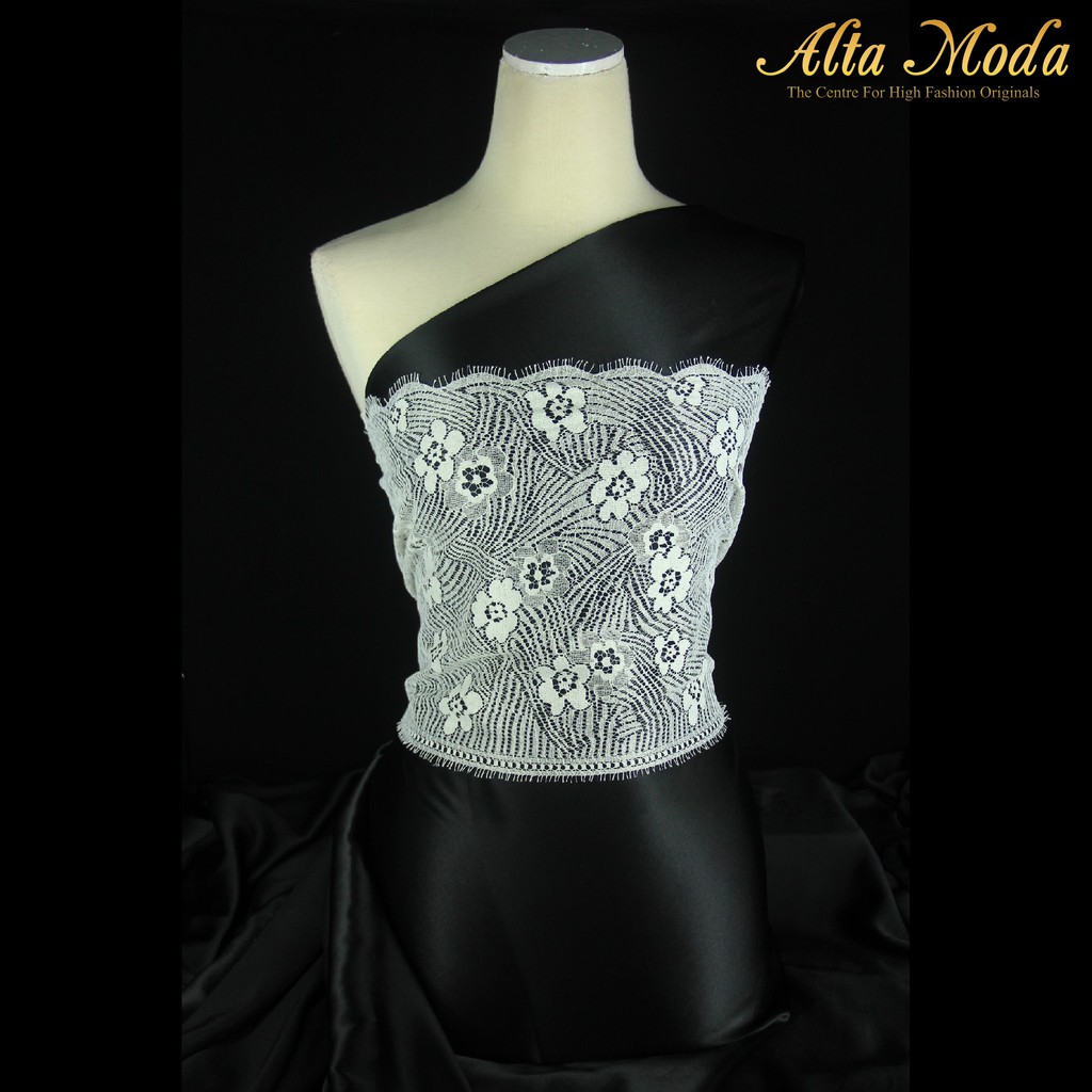 Alta Moda Renda Chantilly Perancis Abstract Bunga Piring Putih (1M)
