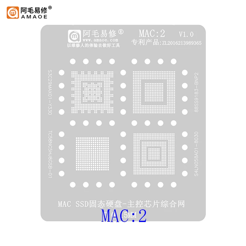 Amaoe MAC:2 BGA Reballing Stencil for MACBOOK S3C29MAX01-Y330 88SS9183-BNP2 TC58NC5HJ8GSB-01 S4LN058A01-8030 SSD NAND FLASH Net