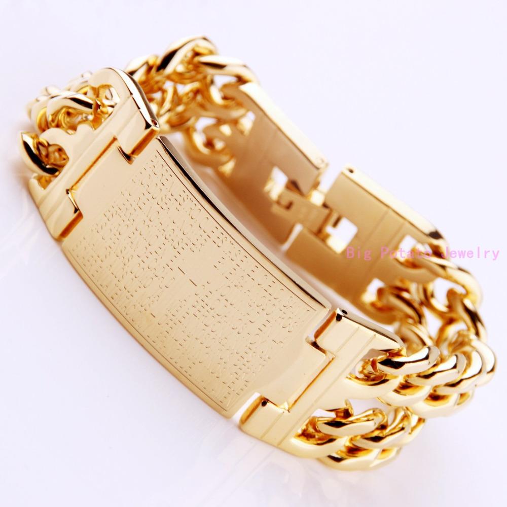 Amaze Design Желтое золото Кубинское звено цепи с лентой удостоверения личности Мужской браслет Ювелирные изделия из нержавеющей стали 22CM