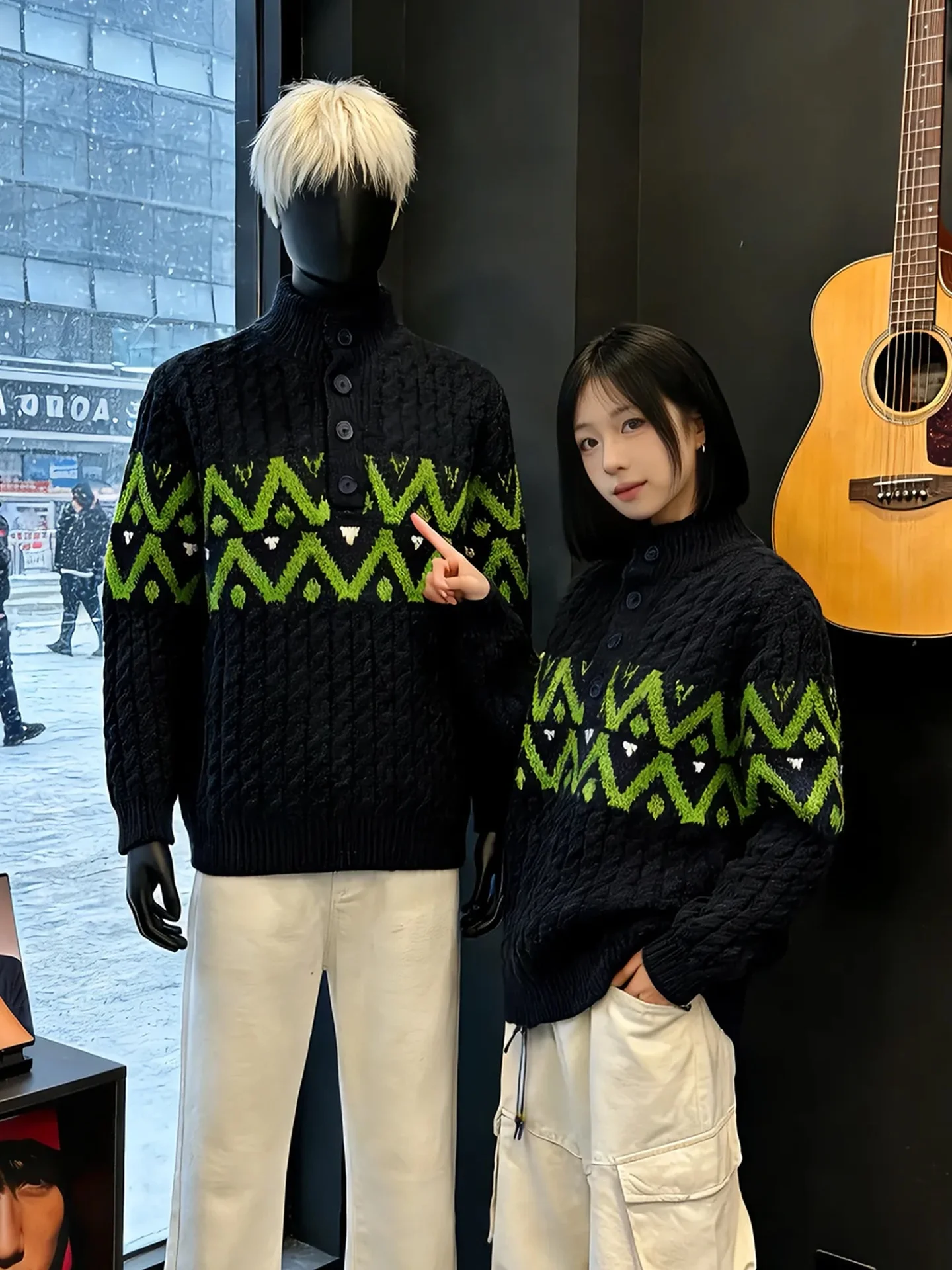 American Sle Knitted Men's Sweater Twist Pattern Winter ential Base Layer irt Henry Collar Fair Isle Design Soft Polye...
