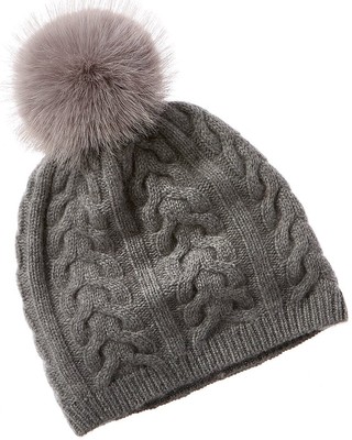 Amicale Cashmere Trellis Женская кашемировая шапка косой вязки серого цвета, Grey, NA