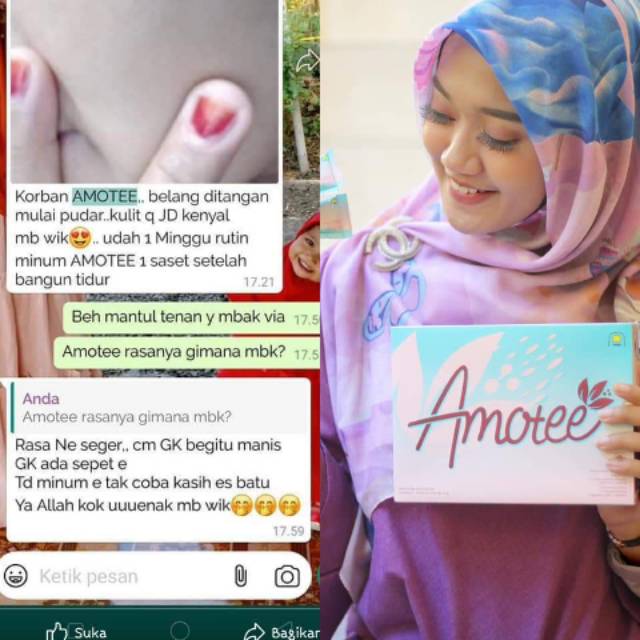 Amotee merupakan minuman serbuk atau suplemen herbal alami yg mempunyai manfaat membantu menjaga kesehatan dg kandungan collagen ikan dan L Glutation