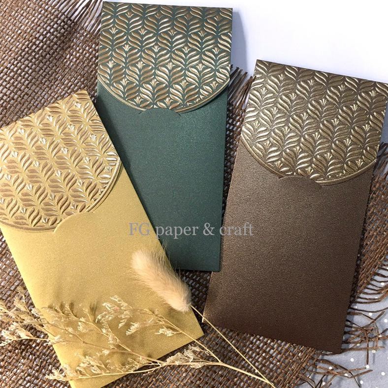 Cutting flip cut pada penutup amplop sehingga lebih praktis digunakan, motif emas emboss ❤️