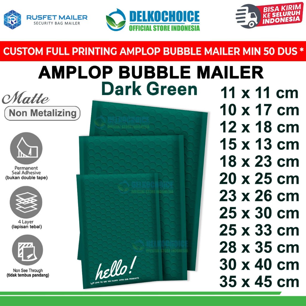 Amplop Bubble DARK GREEN Envelope Bag Security Mailer Kantong Polybubble Packing Paket RUSFET