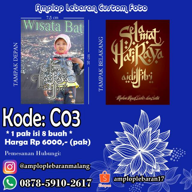 AMPLOP LEBARAN CUSTOM FOTO".. Ukuran 7.5x10 cm.. Harga cuma 6000/pak (isi 8).. Ada juga desain dan ukuran lain.. Cek di Home Kami.. OPEN RESELLER.. Info dan pemesanan WA 087859102617 Shopee: amploplebaran17