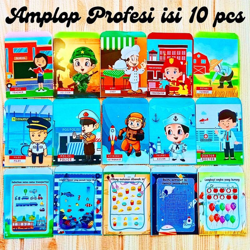Amplop lebaran dengan aneka gambar profesi.
