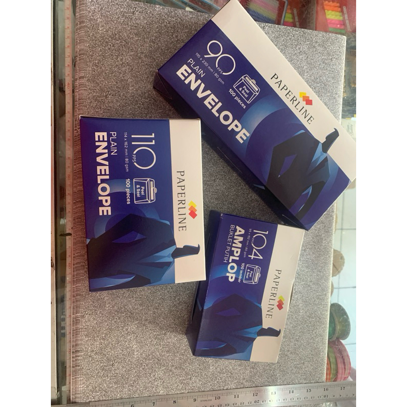 Amplop putih polos merk Paperline isi 100 lembar.