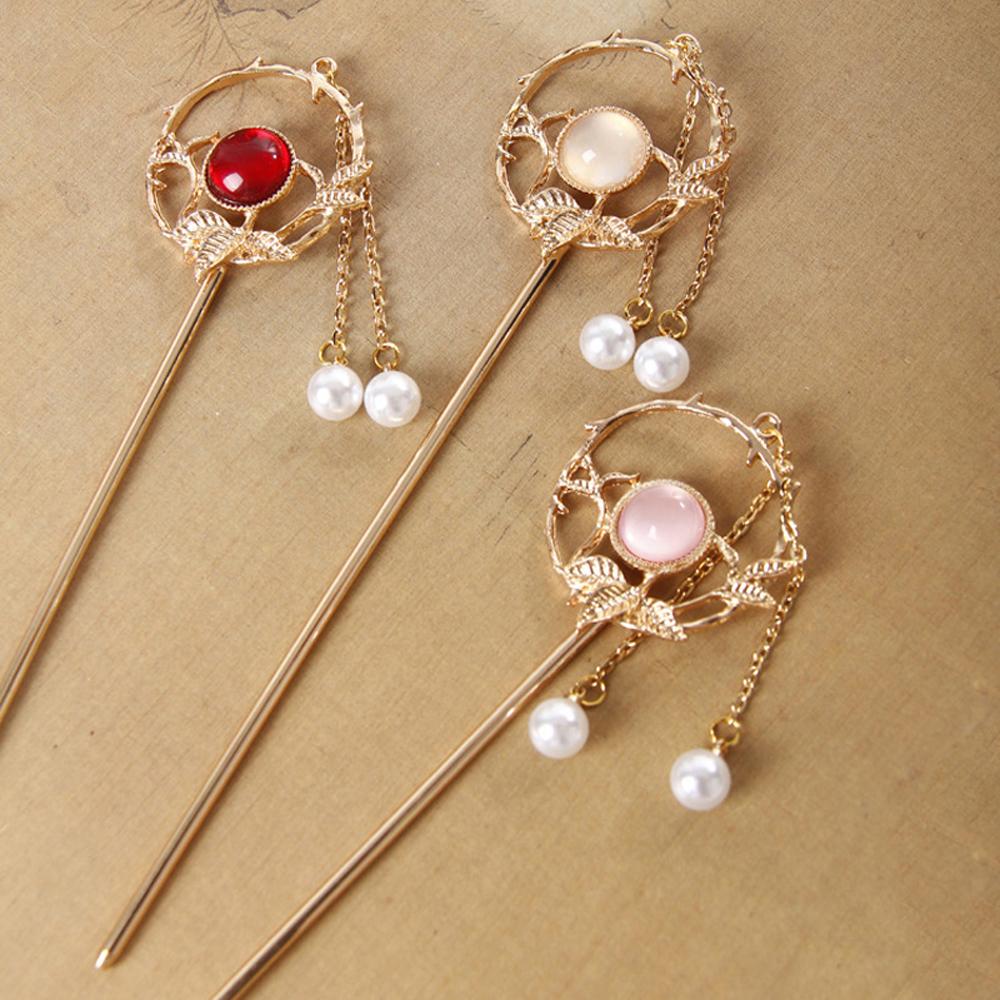 Ancient Style Leaves Chinese Crystal Hair Accessories Pearl Hair Sticks Hair Fork Tassel Hairpin