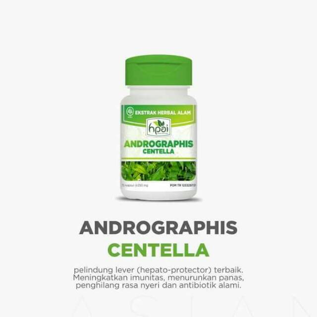 Andrographis Centella berperan sebagai pelindung lever (hepato-protector) terbaik. ermanfaat meningkatkan sistem kekebalan tubuh, menurunkan panas (bersifat diuretic), analgesik alami (penghilang rasa nyeri) dan antibiotik alami.