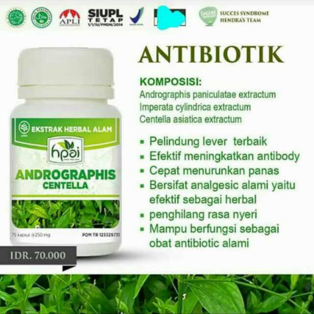 Andrographis Centella mengandung ekstrak sambiloto (andrographis paniculata), ekstrak ilalang (imperata cylindrica) dan ekstrak pegagan (centella asiatica).