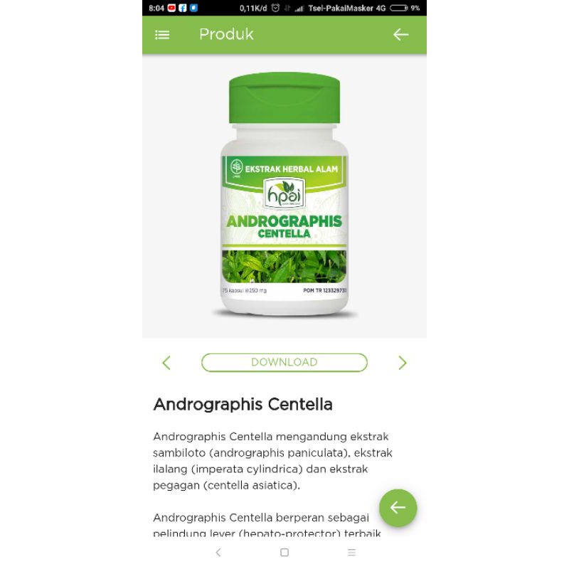 Andrographis Centella mengandung ekstrak sambiloto (andrographis paniculata), ekstrak ilalang (imperata cylindrica) dan ekstrak pegagan (centella asiatica).