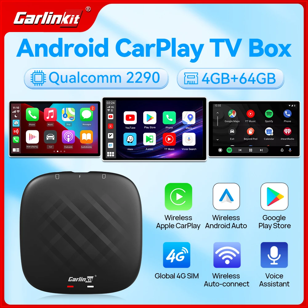 Android 11 CarlinKit беспроводной CarPlay Android Автоматическая ТВ-приставка QCM2290 мини CarPlay Ai Box голосовой помощник 4G LTE для YouTube Netflix