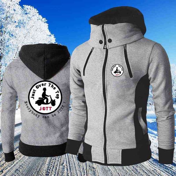 men's autumn winter just over the jott print et warm and windproof double zipper men hooded dign turtleneck coat, Black
