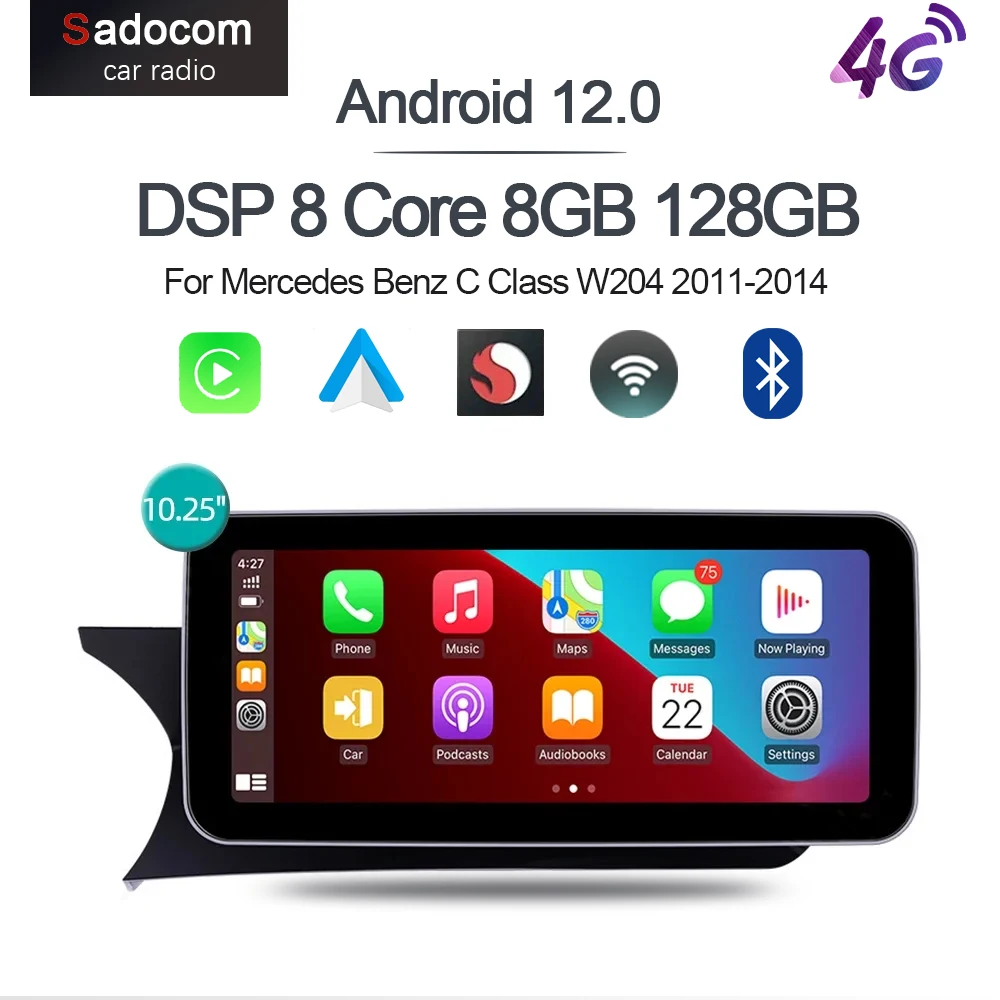 Android 12 CarPlay авто стерео радио автомобильный мультимедийный плеер для Mercedes Benz C Class W204 2011-2014 GPS навигация 4G WiFi BT
