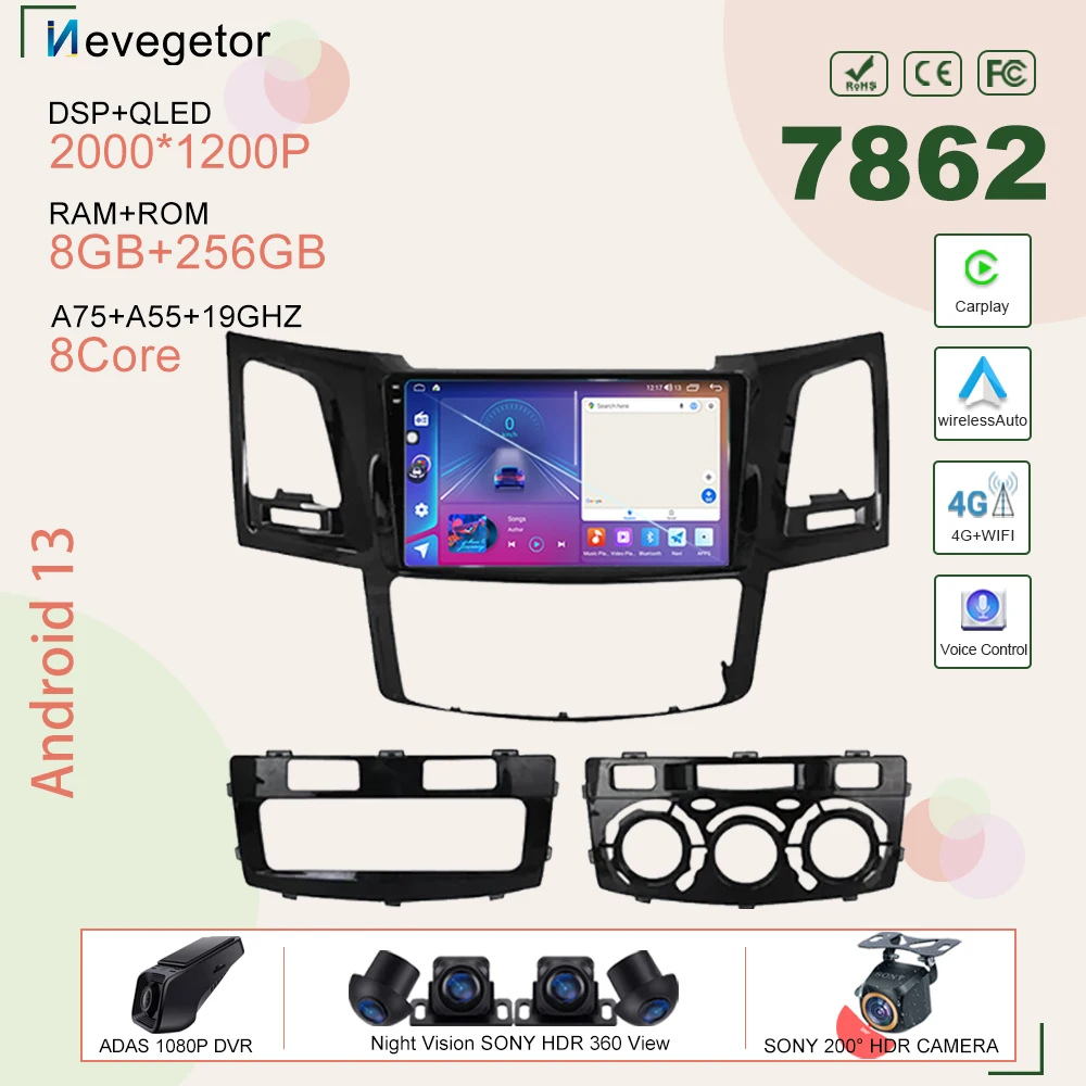 Android 13 Carplay для Toyota Fortuner 1 AN50 AN60 HILUX Revo Vigo 2005 - 2014 Автомобильный GPS-навигатор мультимедийный плеер NO 2din DVD