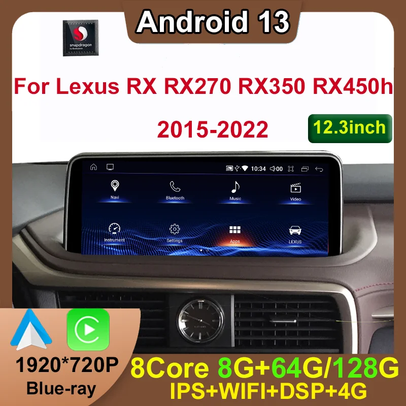 Android 13 Qualcomm 8 + 128G для Lexus RX RX200t Rx300 Rx350 Rx450h Авто Carplay автомобильный Dvd-плеер навигация Мультимедиа Стерео