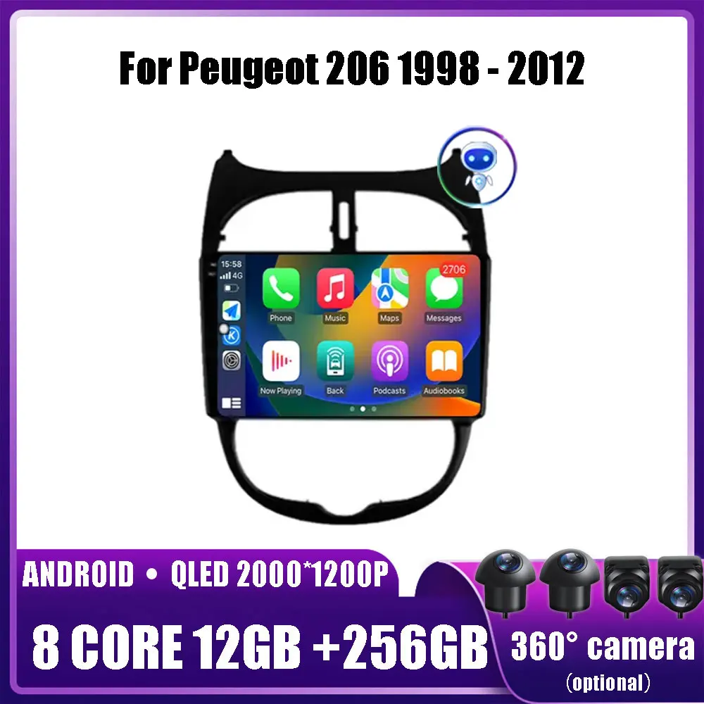 Android 14 для Peugeot 206 1998 - 2012 Автомобильная Мультимедийная стереосистема GPS-навигация BT WIFI 4G автомобильные аксессуары инструменты led DSP