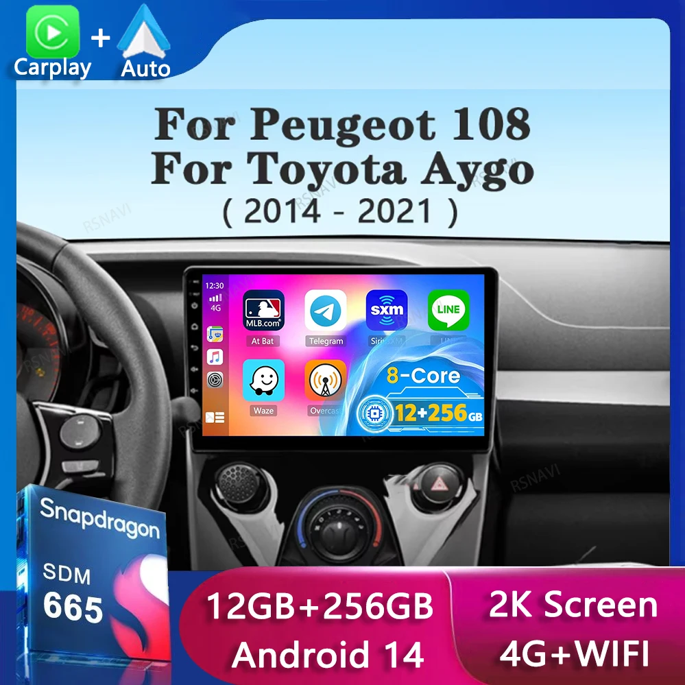 Android 14 Carplay авто радио для Toyota Aygo Peugeot 108 Citroen C1 2016-2020 мультимедийный видеоплеер GPS авторадио стерео