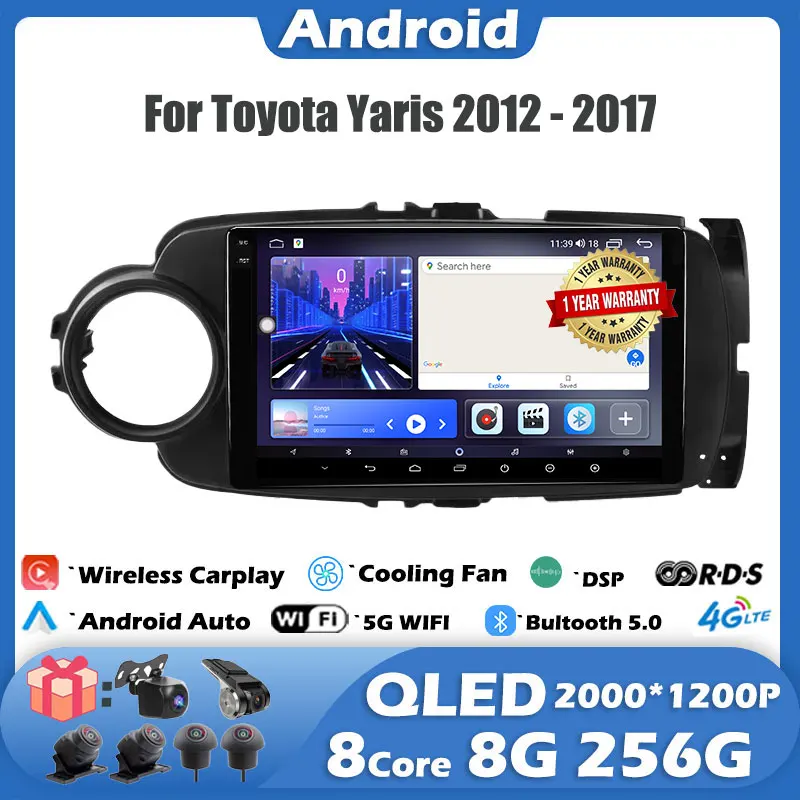 Android13 для Toyota Yaris 2012-2017 IPS/QLED 2000*1200P Автомобильный плеер мультимедийная Навигация Авто Стерео GPS BT 4G WIFl 9 дюймов