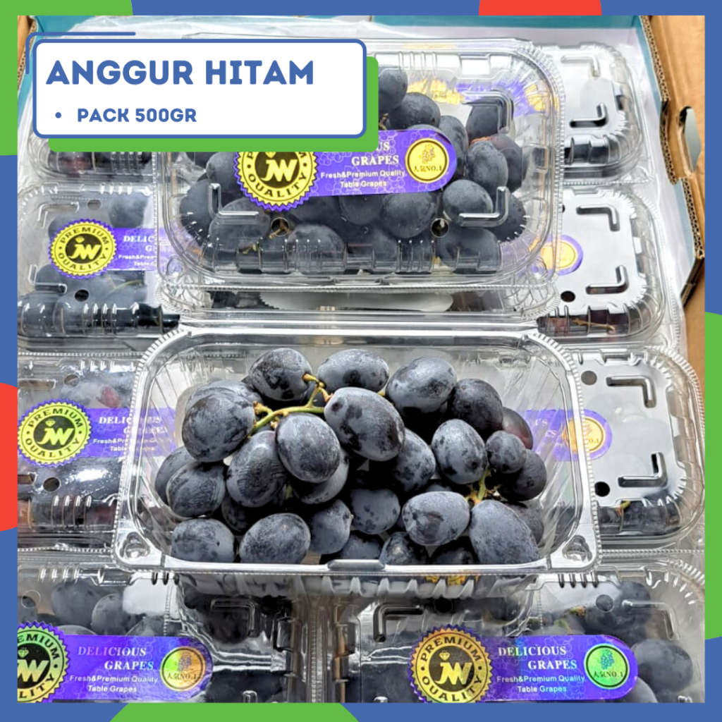 Anggur Hitam dari CN yang memiliki rasa manis segar, tidak ada biji, dan garing.