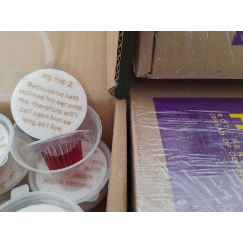 The bread and wine was placed in a safe food cup. We make sure that all of our product clean, interesting and hygenic.