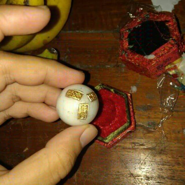 -Keluarkan pil Angong Niuhuang Wan yg berwarna kuning emas dari dalam bola lilin (lilinnya dibuang)