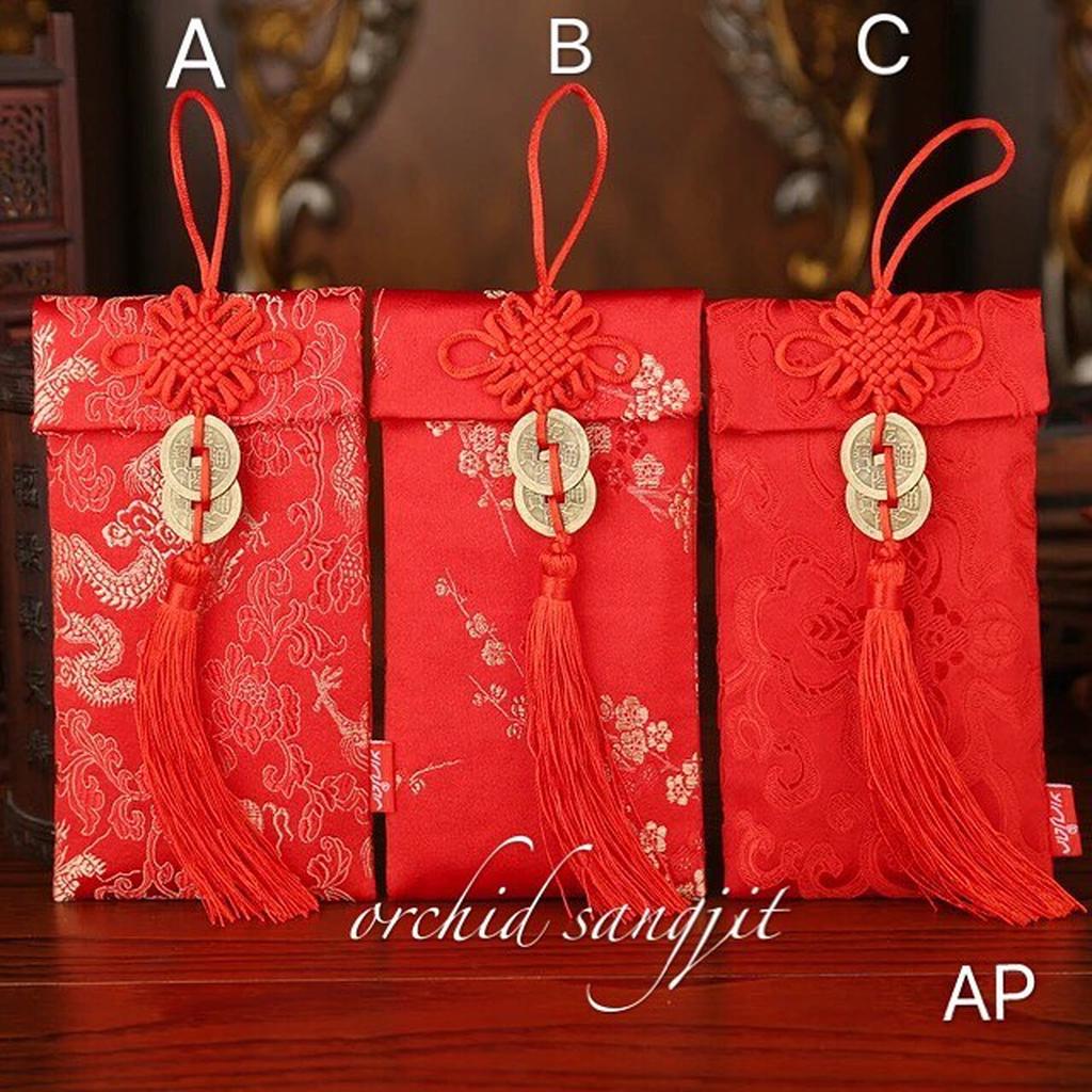 Angpao kain hiasan gantungan logam.