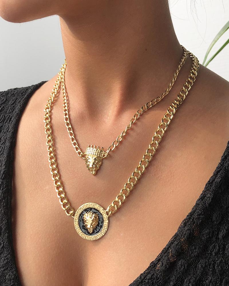 Animal Coin Pattern Pendant Layered Chain Necklace, Gold