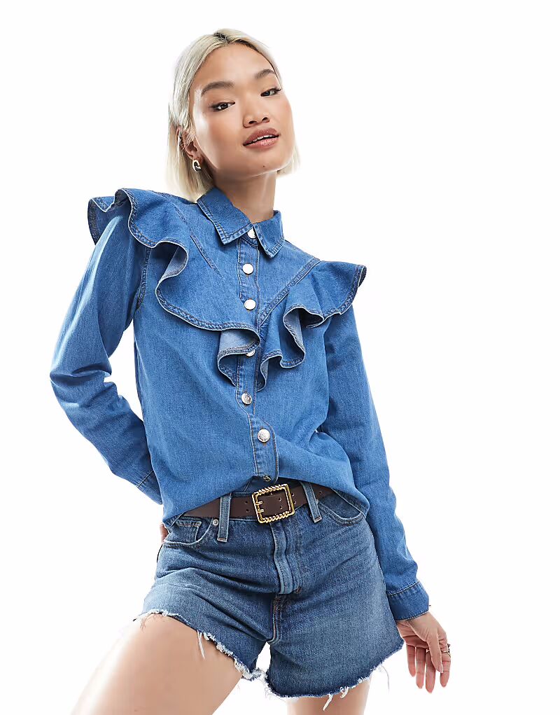 Пиджак Miss Selfridge из ткани шамбре с оборками в стиле вестерн, средняя степень стирки