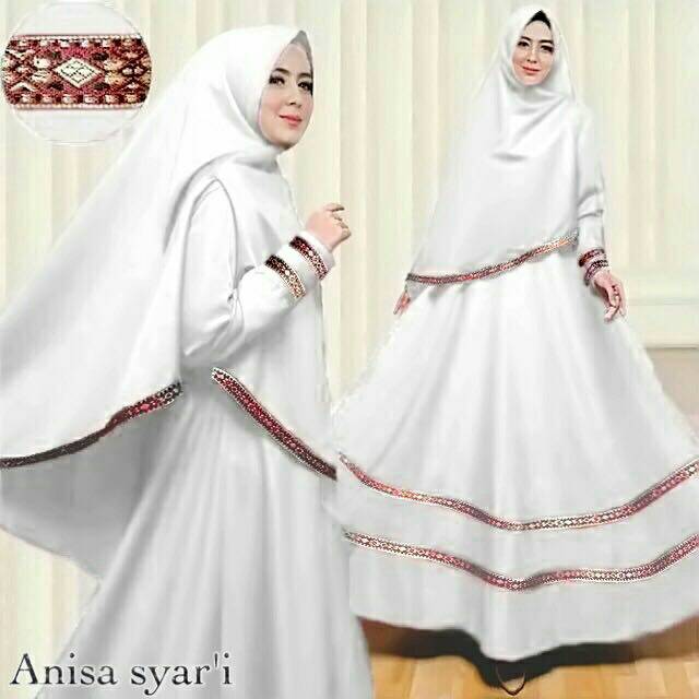Anisa syar'i putih matt full bloteli HQ dgn aksen pita songket.pinggang karet+zipper dpn.Ld110,pb-+135,busui friendly,fit to xL.
