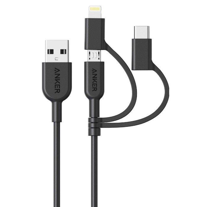 Anker 321 usb-a to lightning cable (3 ft 3-in-1) - black