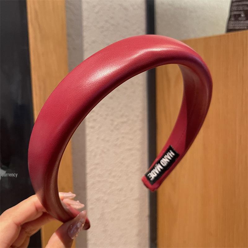 Ankola красная кожаная повязка на голову с высоким черепом: Корейский стиль осень-зима в стиле ретро Гонконг для женщин