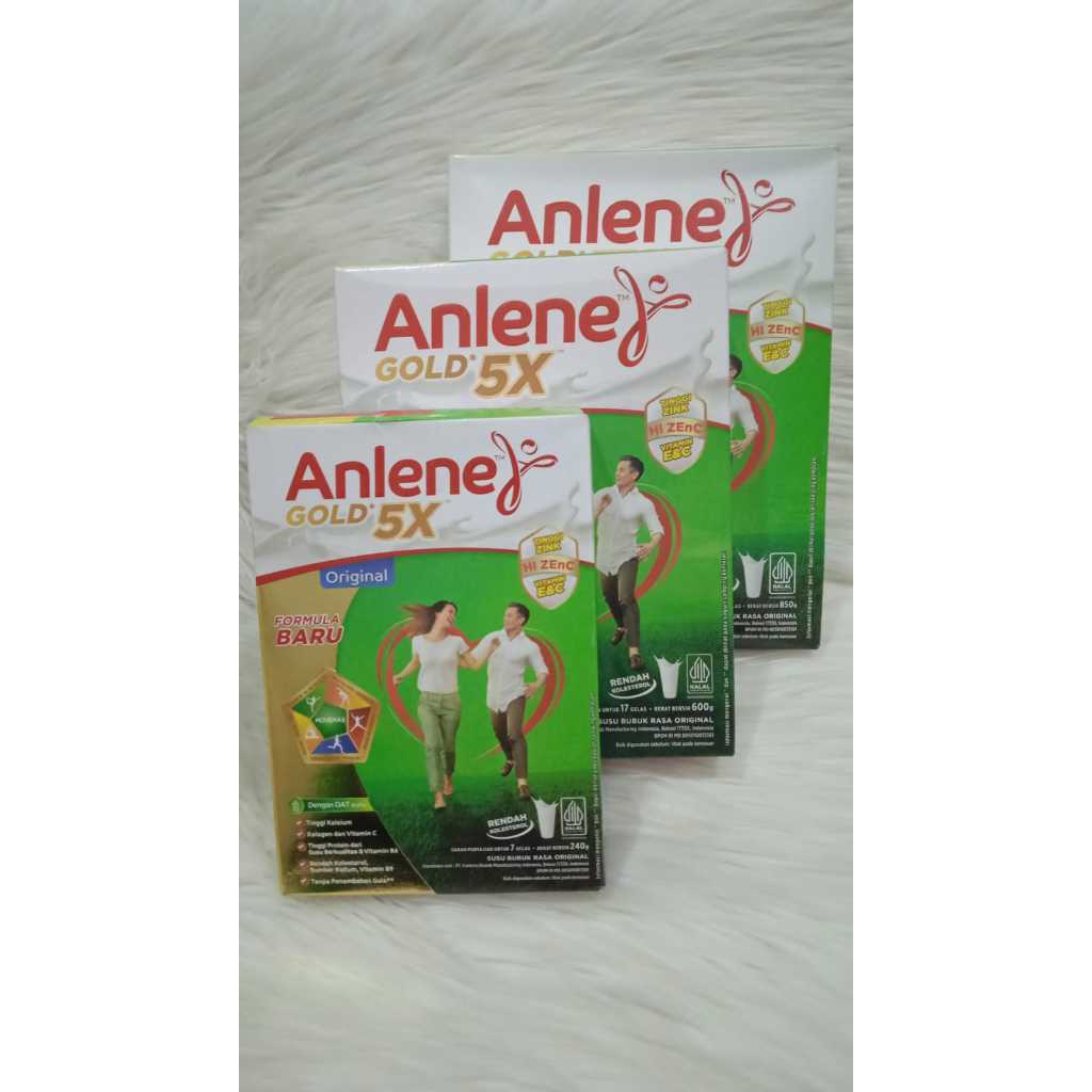Anlene Gold 5X juga mengandung kolagen dari ikan, gluten dari gandum dan protein kedelai. Anlene Gold 5X merupakan packaging baru dari Anlene Gold Plus. Cukup gabungkan 4 sendok makan susu bubuk original Anlene Gold 5X dalam 200ml air hangat atau dingin dan konsumsi dua kali sehari untuk mendapatkan nutrisi yang Anda butuhkan.