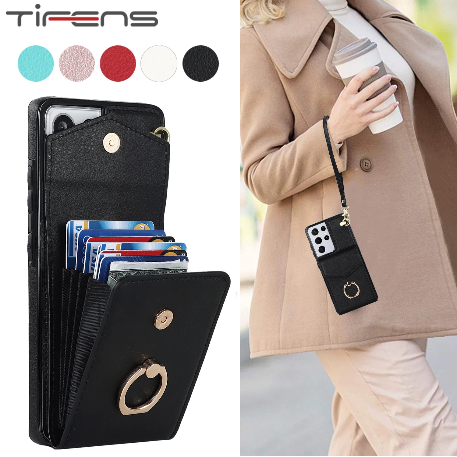 Anti Theft Leather Case For Samsung Galaxy S22 S21 S20 FE Ultra Plus Wallet Card Holder Slots Lanyard Phone Bag Shockproof Cover